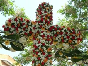 El nostre calendari actual, també fill de l’agrarisme romà, adaptà el paganisme a la realitat cristiana. Millorà el calendari, respectà la tradició pagana i actualitza les festes al món cristià. Una d’elles, la que saludava l’esclat de la primavera i la necessitat d’ofrenar oracions als déus l’adaptà al que es denomina festa de “Les creus de maig”. En l’actualitat aquest motiu d’impetrar la benedicció camperola s’ha convertit en una mostra de creus florals situades en cruïlles de carrers sense més expressió que la simplement expositora. Però eixe costum actual, crec jo, és degut, a banda de la secularització actual, a la desaparició de moltes creus de pedra que se situaven a l’entrada dels pobles. Benissa, per fortuna, encara les manté. I una d’elles, molt artística, a la plaça del Portal. És el respecte d’una realitat cultural fermament ancorada, i degudament documentada i, no cal dir-ho, ben arrelada en la nostra tradició.