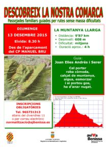 El diumenge 13 de desembre s’ha organitzat la tercera ruta del cicle “Descobreix la nostra comarca” 2015-2016, amb una ruta circular que recorrerà la Muntanya Llarga.