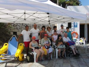 Alguns alumnes del Centre Ocpacional Maite Boronat de Calp -centre d’atenció a persones amb discapacitats físiques, psíquiques i sensorials-, es van desplaçar recentment a la platja de la Fustera de Benissa, on els voluntaris de la Creu Roja els van acompanyar per a donar-se un bany. Els alumnes van tindre l’oportunitat d’usar la cadira amfíbia, una novetat que aquest estiu ha posat en marxa la Regidoria de Sanitat, en col·laboració amb la Creu Roja de Calp, amb la intenció de donar un servei perquè les persones minusvàlides o amb mobilitat reduïda gaudisquen de la platja.