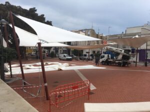 Es tracta de la reposició de la coberta tèxtil dels tendals de la Glorieta Dolors Piera, la reposició del marge de contenció de la zona verda de Les Calcides, la reparació dels danys al c/ El Teuladí i Av. Les Calcides i la reparació al Camí de Lleus.