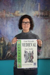 Raquel Soliveres amb el cartell del mercat medieval de Benissa