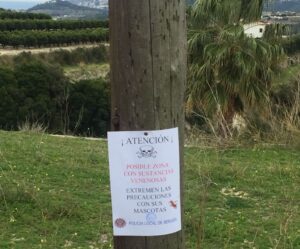 L’Ajuntament de Benissa desitja transmetre la seua més severa condemna davant els nous casos d’enverinament de gossos. Es recorda que en el cas que qualsevol persona es trobe en el camp algun animal de fauna silvestre o domèstica enverinat, és important saber que no se l’ha de tocar ni moure, havent de cridar immediatament al telèfon gratuït del Seprona (062) o al ja citat telèfon de la Guàrdia Civil a Benissa, marcant el 96 573 07 22.