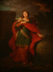 Santa Bàrbara era d’Antioquia i vivia en temps de l’emperador Maximinià. La seva història parla que son pare la tancà en una torre per a preservar-la del setge a què la sotmetien els seus pretendents. Abans d’entrar a la cel·la la santa es batejà en una piscina. Fugí de la seva presó i denunciada per ser cristiana fou condemnada a mort. Parla la llegenda que un raig matà als seus verducs. Quan se la representa iconogràficament sempre apareix amb una torre. Eixa torre ha de tenir tres finestres que simbolitzen les tres persones de la Santíssima Trinitat. De vegades al peu de la torre apareixen tres canons com a símbol del fet que és patrona dels artillers i tots els professionals que treballen amb explosius.