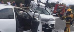 Mentre, la ràpida arribada dels bombers del parc auxiliar de Benissa ha sigut providencial. Els dos vehicles havien començat a cremar-se. Els bombers han apagat a tota pressa les flames i han evitat que els cotxes acabaren cremats del tot. Una altra dotació de bombers de Dénia ha netejat després la calçada.