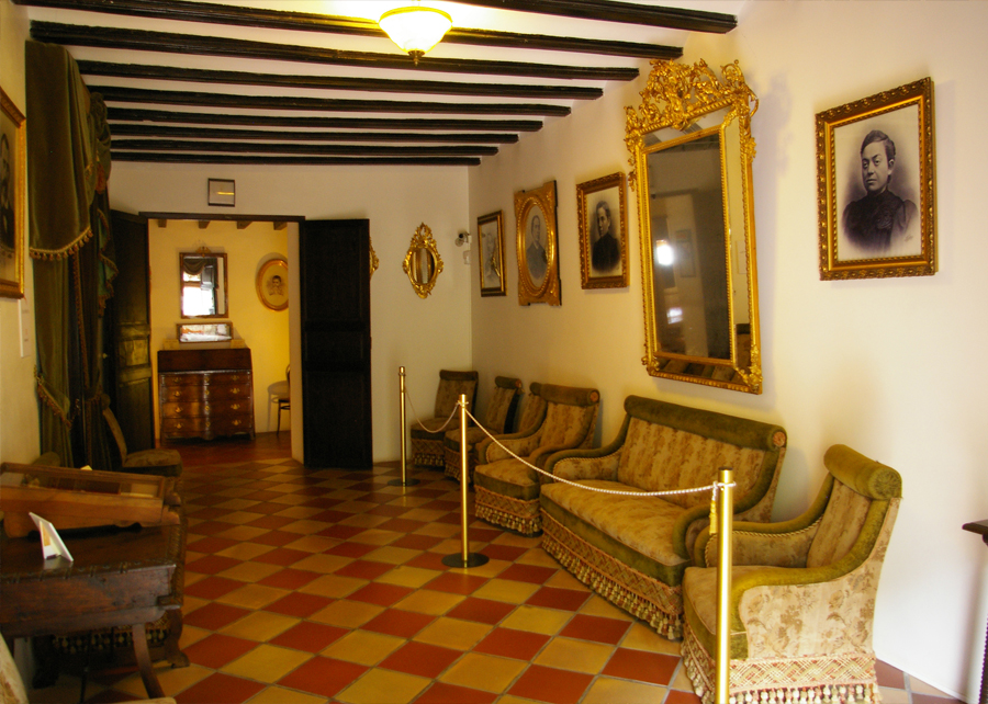 Passegem en animada conversa per les antigues estades de la hisenda, la restauració de la qual sintetitza la seua esplendor rural d’antany amb els elements nous del llenguatge arquitectònic. La biblioteca és magnífica, supera el miler d’exemplars; en ella vaig descobrir un Madoz complet, primera edició, que m’hauria encantat fullejar… Juan Pedro es va mostrar molt orgullós de la col·lecció: la considera molt estimable en el seu capítol del XVIII i excepcional en el del primer terç del XIX. Vam recórrer junts les habitacions contigües, de pesat ambient i decoració, observant mobiliari, ferramentes i detalls d’ornament. Una esplèndida col·lecció de fotografies d’època a la sala principal retrata molts dels personatges que hem anat glossant en aquestes línies. Dels seus rostres, avorrits, altius, nobles o displicents, només podria percebre’s un besllum opac de solemnitat…