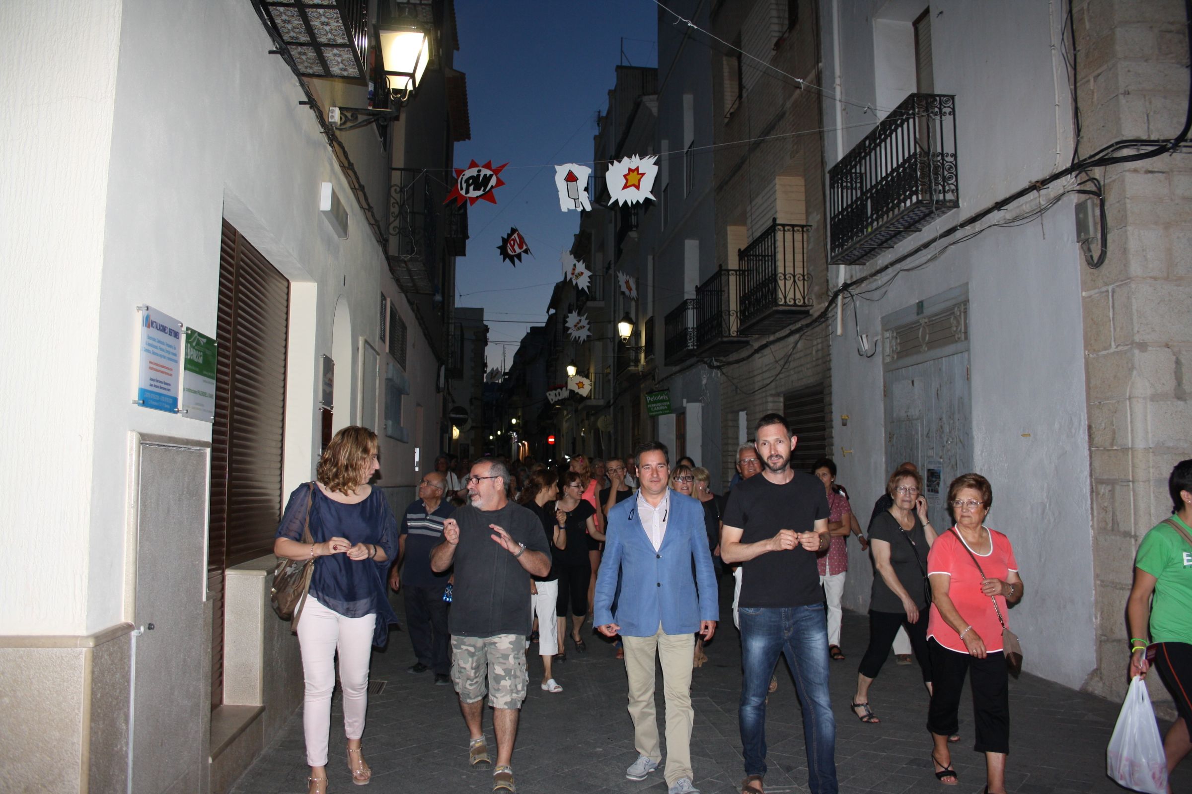 Després dels parlaments, els artistes van iniciar amb una globotada, el recorregut per totes les peces exposades i van anar explicant una a una les obres i els seus significats al nombrós públic assistent. La comitiva va acabar a la placeta de l’Església Vella, on es van presentar també les obres realitzades al taller artístic fet el passat 14 de juny. La cloenda de l’acte va estar amenitzada amb música i imatges de vídeo i amb un xicotet aperitiu per a tots els assistents.