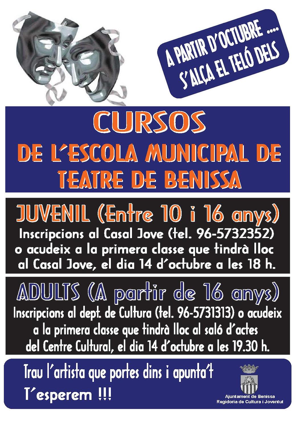 L’Escola Municipal de teatre de Benissa obri de nou les seves portes el pròxim 14 d’octubre per a iniciar el curs 2014-2015.
