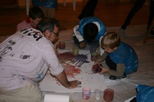 El taller es va organitzar en diferents parts: en primer lloc es van visualitzar obres d’artistes de moviments pictòrics com l’impressionisme o l’expressionisme alemany sense oblidar artistes de l’estat espanyol com Joan Miró, després es van realitzar barreges de colors per a l’obtenció d’altres nous en un exercici de “màgia”.La pràctica pictòrica va començar dibuixant els suports amb carbó per a aplicar després pintures acríliques o ceres. En la segona part del taller es van utilitzar noguerines i també altres tècniques com la pintura de dits o el collage.