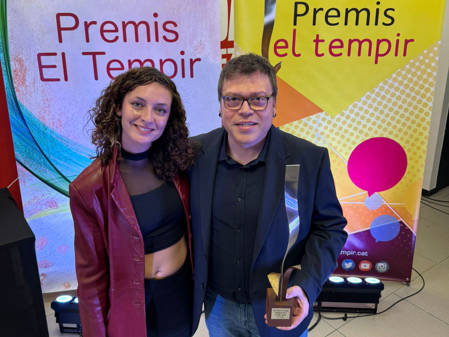 Joan Nave, director de la companyia, s’ha encarregat d’arreplegar el premi conjuntament amb l’actriu Roo Castillo a mans de Josep-Enric Escribano, president d’El Tempir. Tots dos han enumerat els tòpics als quals han hagut de respondre des que van iniciar el projecte i han celebrat que l’èxit ha sigut possible amb una companyia teatral impulsada des d’Elx i en valencià. «No comptàvem amb res segur: només volíem fer teatre i fer país», relatava Nave, que assenyala que més de 150.000 joves han pogut veure les seues obres. «Al nostre favor ha jugat no comprar discursos aprioristes de derrota», concloïa el dramturg en el seu discurs.