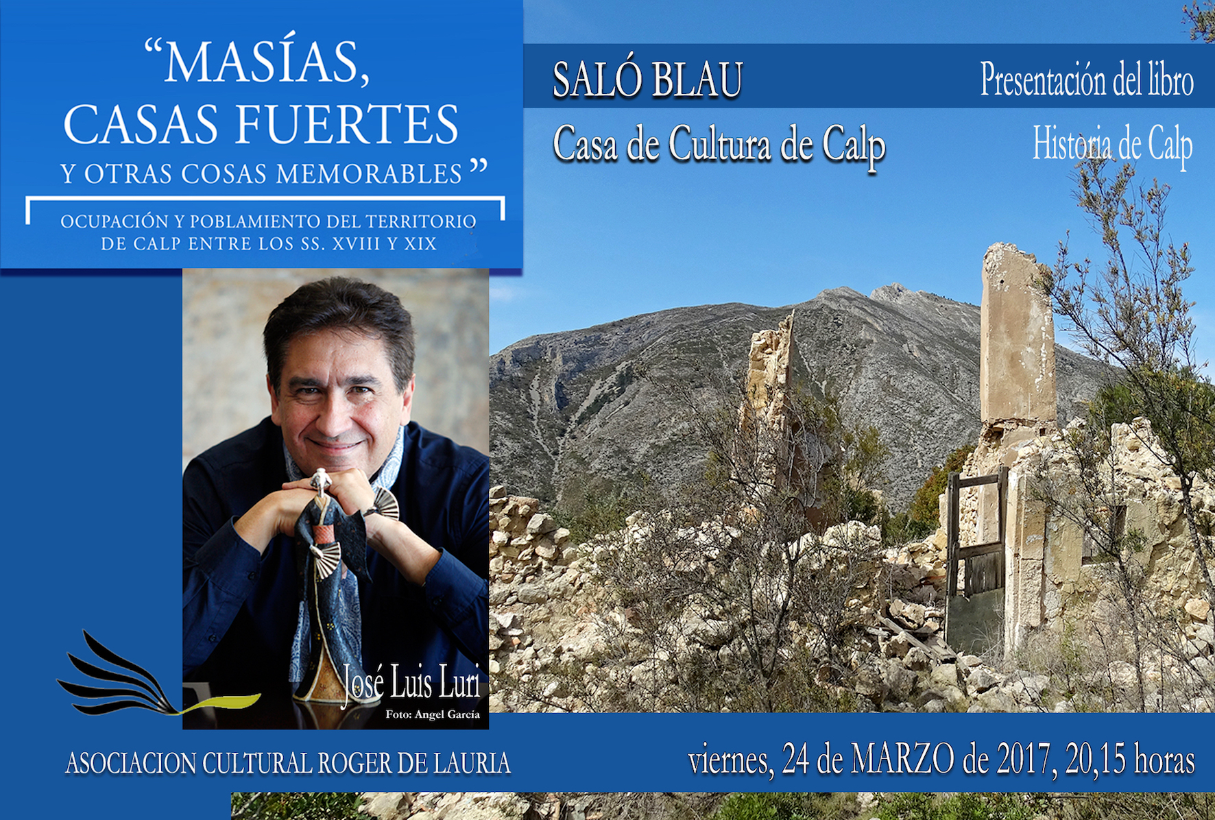 L’investigador calpí José Luís Luri presentarà aquest divendres 24 de març a les 20.15h al Saló Blau de la Casa de Cultura de Calp el llibre “Masías, casas fuertes y otras cosas memorables: ocupación y transformación del territorio de Calp entre los ss. XVIII y XIX”. Aquesta obra, centrada en el patrimoni rural calpí, té una forta relació amb Benissa, donat que les principals heretats de Calp es trobaven en mans de les famílies dels rics terratinents benissers.