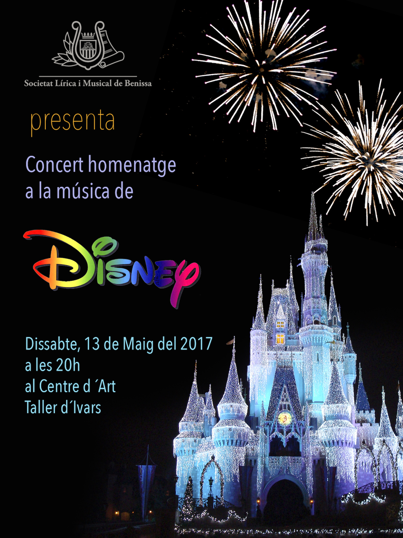 El pròxim dissabte dia 13 de maig a les 20.00h, la banda de la Societat Lírica i Musical de Benissa oferirà al Centre d’Art “Taller d’Ivars” un concert homenatge a la música de Disney emmarcat dins de la XXIIa Campanya de Música als Pobles que patrocina la Diputació d’Alacant amb el següent programa: