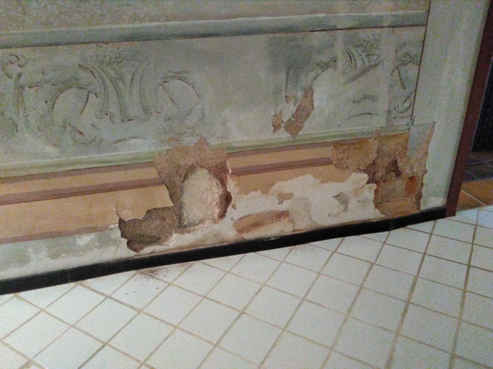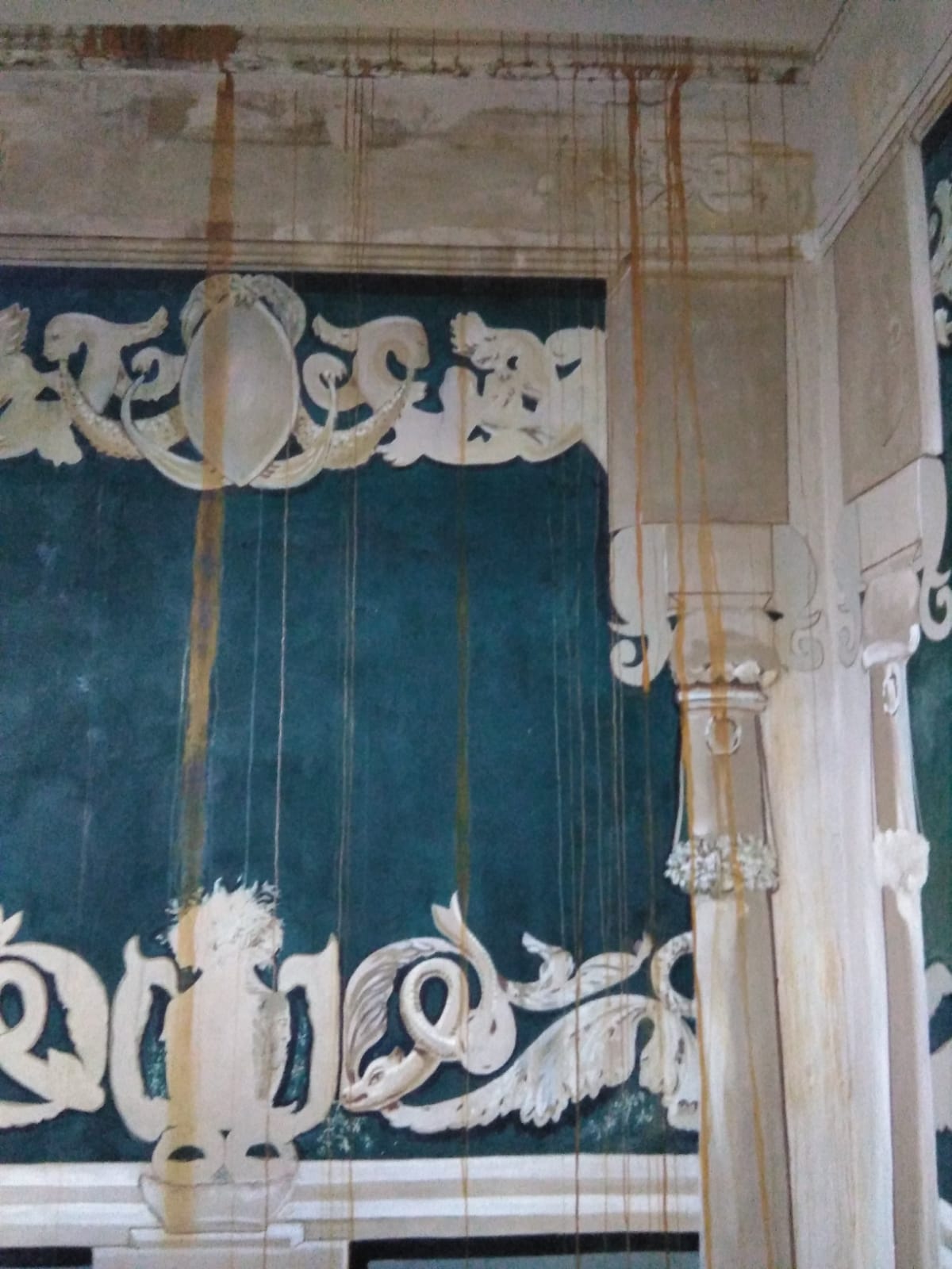 La sala noble de la Seu universitària La Marina a Benissa es troba en un greu risc patrimonial. La humitat afecta seriosament les pintures murals i de les bigues de fusta de la instal·lació, l’antiga Casa Palau dels Andrés, de finals del segle XVIII i principis de segle XIX. En certes parts de les parets la pintura ha desaparegut per complet i en altres podria fer-ho si no s’actua amb urgència.