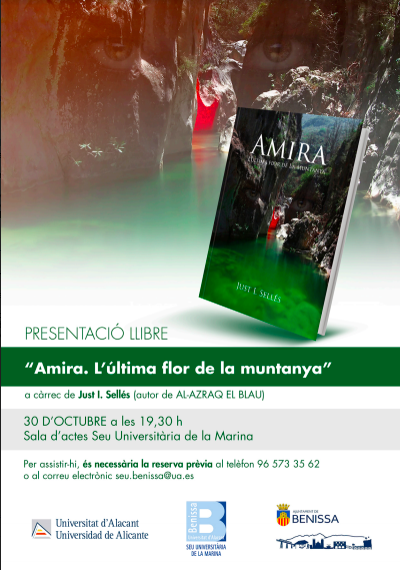 Aquest divendres 30 d’octubre a les 19.30h a la Sala d’actes de la Seu Universitària de la Marina a Benissa, Just I. Sellés presentarà el seu darrer llibre “Amira. L’última flor de la muntanya”. Per a assistir a l’acte cal reservar de forma prèvia telefonant al 96 573 35 62 o enviant un mail a seu.benissa@ua.es