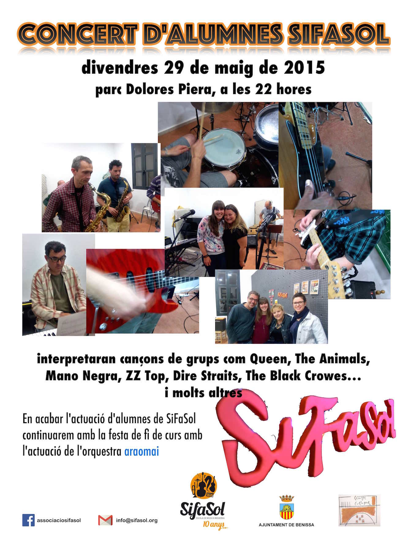 Enguany estem preparant un concert de finalització de curs amb temes de rock, alguns com Queen, Mano Negra, Dire Straits i molts altres. Serà divendres que ve 29 de maig, a les 22h al parc Dolores Piera de Benissa.