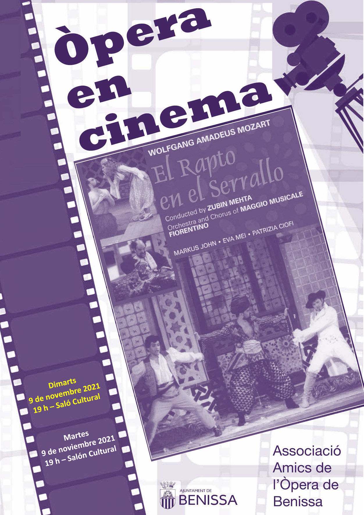 Els Amics de l’Òpera de Benissa han organitzat per a aquest dimarts 9 de novembre (19h, Sala d’actes del Centre Cultural) l’inici de la temporada d’òpera en cinema amb la projecció de “El rapte en el Serrall”, composta per Wolfgang Amadeus Mozart.