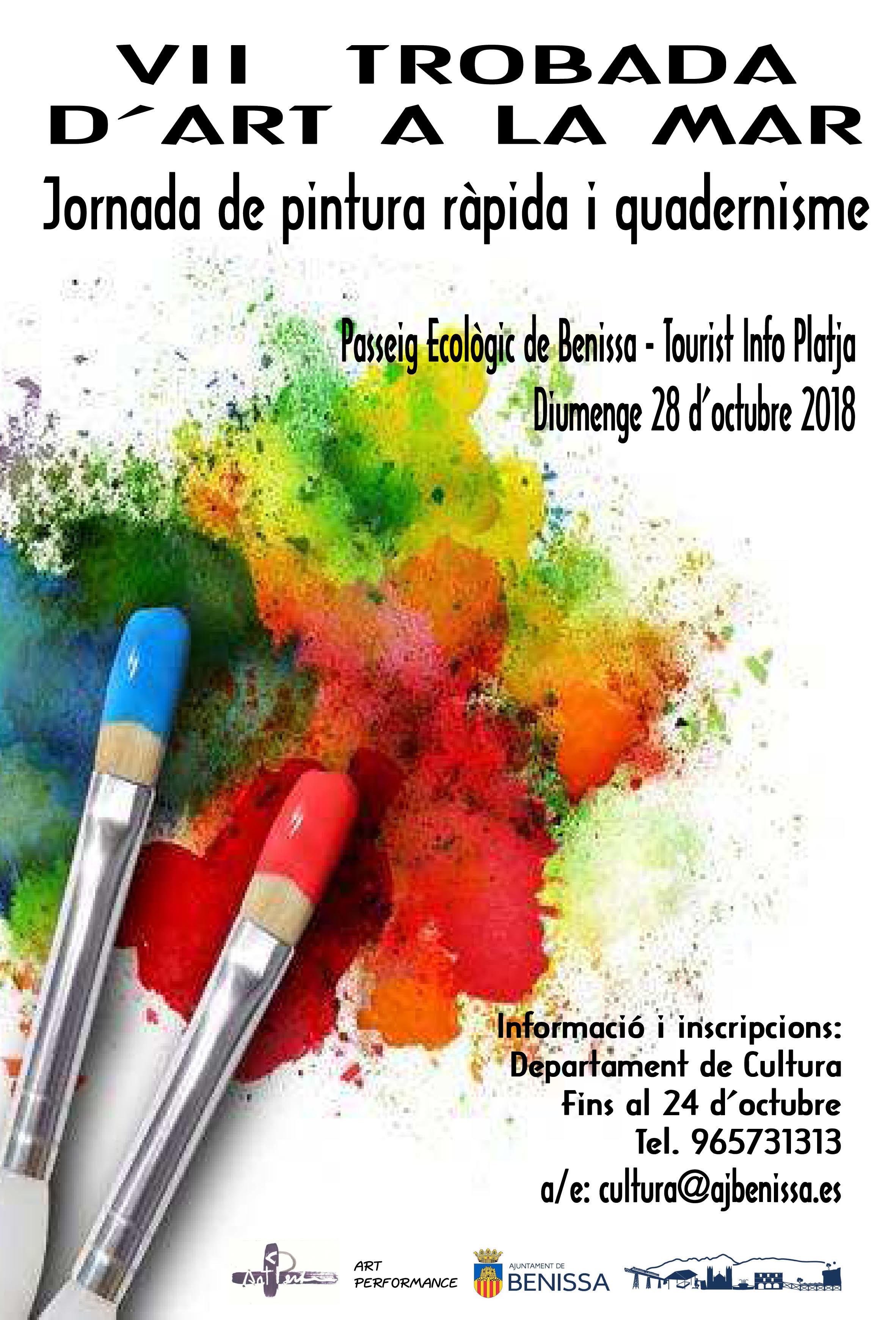 Com en ocasions anteriors, aquesta activitat es desenvoluparà des de les 9.00h del diumenge 28, on els participants podran crear les seues obres de temàtica lliure sobre l’espai habilitat. L’organització de l’esdeveniment és a càrrec de l’Associació Art Performance i l’Ajuntament de Benissa, i es preveu una nombrosa participació, la qual cosa permetrà amb posterioritat gaudir de l’exposició de totes les obres que podran ser contemplades en la sala d’exposicions de l’Aula de la Mar, des del 5 de novembre i fins el 31 de desembre.