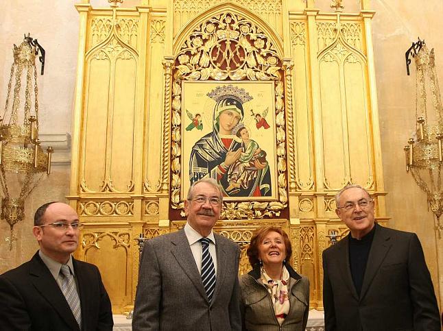 Amb la restauració del retaule neogòtic de la Verge del Perpetu Socors, la Basílica de Santa María d’Alacant està llesta per a posar el punt i final a la recuperació de totes les seues taules, mancant la de Sant Cosme i Sant Damián. El retaule neogòtic datat a la fi del segle XIX va ser presentat ahir després dels treballs realitzats en els últims quatre mesos per l’Institut Valencià de Conservació i Restauració, amb un pressupost de 12.000 euros, finançats a parts iguals entre Caja Mediterráneo (CAM) i la Conselleria de Cultura.