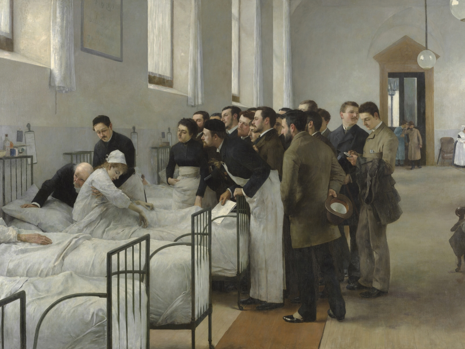 Una sala del hospital durante la visita del médico en jefe, obra de Luís Jimenez Aranda