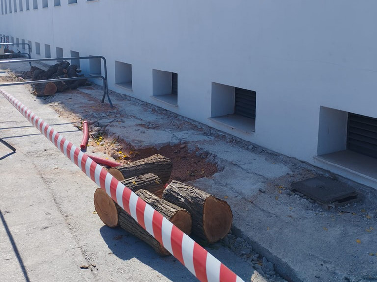 L’Avinguda de la Constitució de Benissa ha aparegut hui amb tots els arbres tallats. Les mèlies, que ja tenien una edat avançada, i proporcionaven ombra a la zona s’han tallat amb motiu de les obres d’ampliació de les voreres i eliminació d’aparcaments en un dels costats del carrer que l’Ajuntament de Benissa està executant dins del projecte NextGenerationEU i amb un cost de 76.000 €.