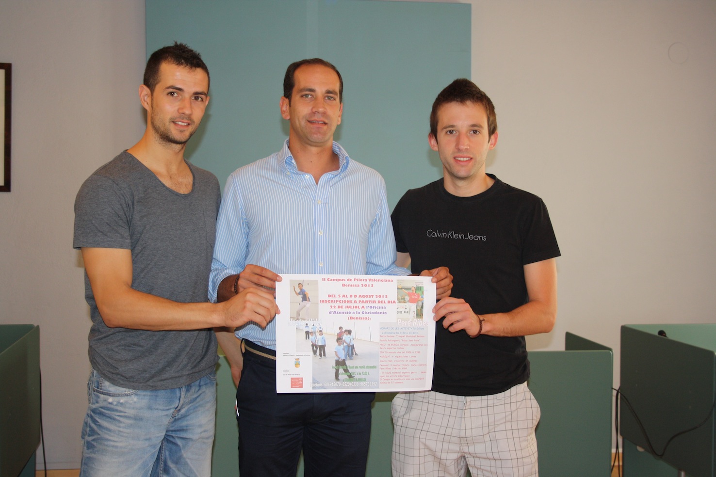 El dilluns pel matí, el regidor d’Esports Arturo Poquet va presentar en roda de premsa el II Campus de Pilota Valenciana Benissa 2013. El regidor ha estat acompanyat per Pere Ribes i Héctor Vidal que juntament amb Carlos Cabrera seran els tres monitors titulats que impartiran el campus.
