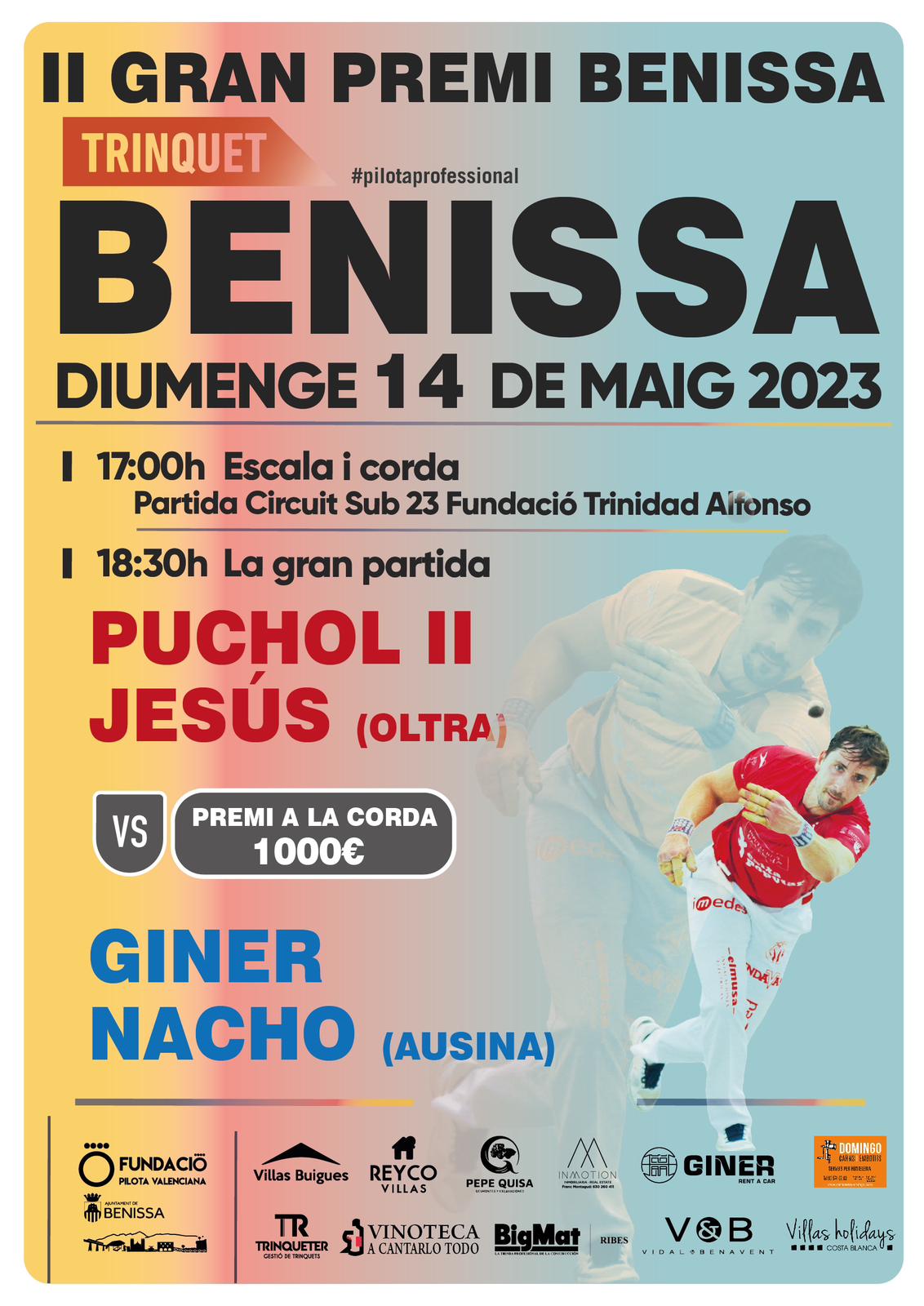 La competició començarà a les 17h amb una partida de la modalitat Escala i Corda del circuit sub 23 de la Fundació Trinidad Alfondo, i serà a partir de les 18.30h quan tinga lloc la gran partida que enfrontarà Pucho II, Jesús i Oltra contra Giner, Nacho i Oltra. El gran al·licient d’aquesta partida no és només el cartell, sinó el premi de 1.000 euros per al guanyador, un estímul atractiu que convertirà aquest gran premi en un esdeveniment emocionant.