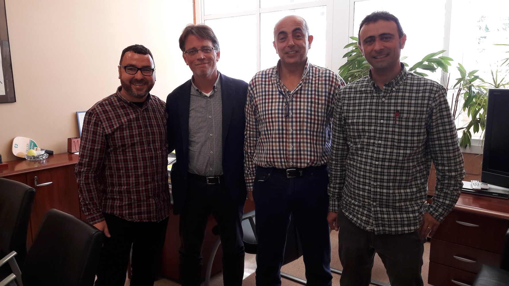 Va de bo. Benissa ja està preparant el 60é aniversari del Trinquet Municipal i fa uns dies s’ha donat un pas important amb la visita de la Regidoria d’Esports a la Direcció General d’Esports de la Generalitat Valenciana. En una fructífera reunió de treball, van participar Josep Miquel Moya, director general d’Esports, Sebastià Giner, coordinador de pilota valenciana de la Direcció General d’Esports, Francesc Xavier Tro com a regidor d’Esports de l’Ajuntament i Pere Tent, cap del Departament d’Esports local.