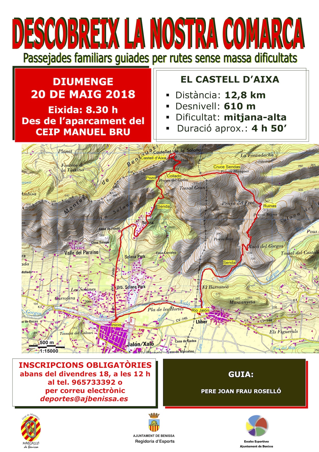 El pròxim diumenge, 20 de maig, el Cicle Descobreix la Nostra Comarca conclou la temporada 2017-2018 amb una ruta circular des de Xaló fins el Castell d’Aixa i tornant per Llíber.
