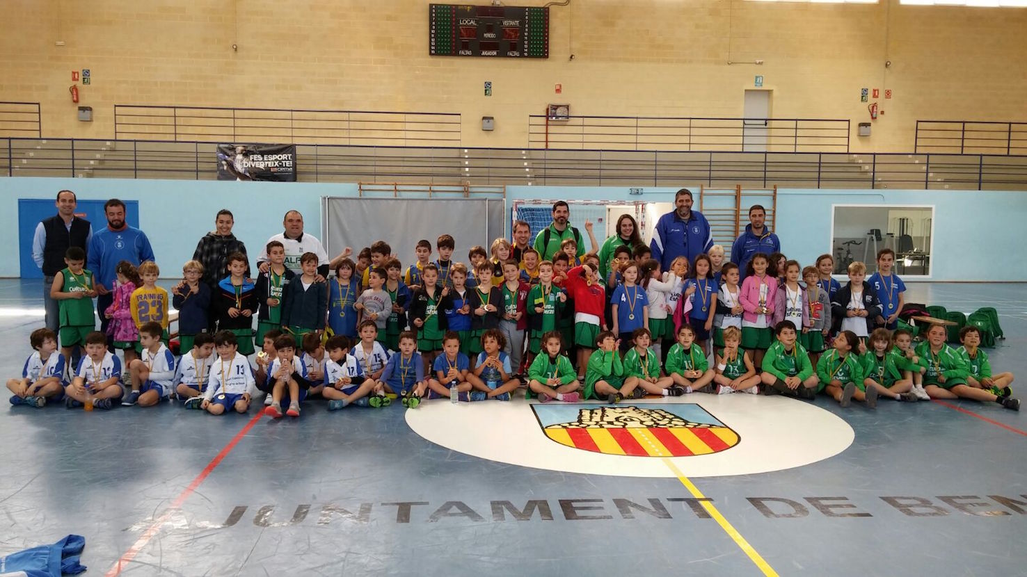 El Palau Sant Pere de Benissa va acollir el diumenge passat un torneig de categoria prebenjamí en el qual van participar 75 xiquets i xiquetes dels següents equips: CB Calp blanc, CB Calp verd, EE Ondara, CB Xàbia, EE Els Poblets i l’Escola Municipal de Bàsquet Benissa.