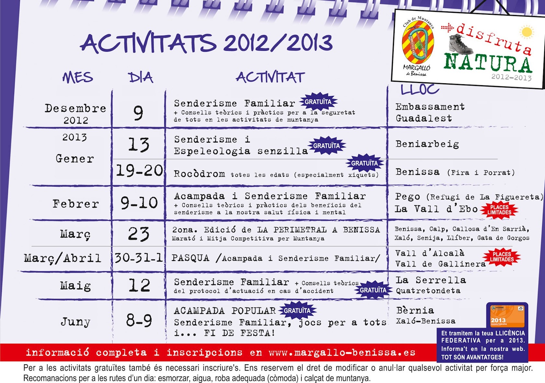 El Grup de Muntanya Margalló publica el programa complet d’activitats “Disfruta Natura” 2012/2013