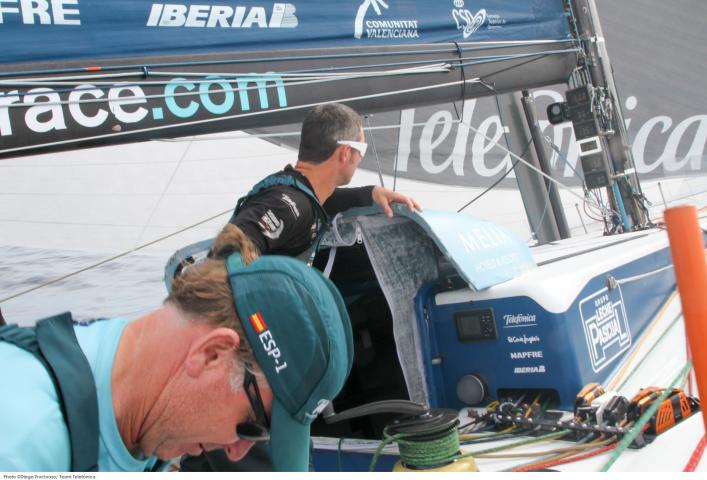 I sense temps per a descansar, en el “Telefónica” els tripulants comencen a habituar-se a la vida a bord i “encara que portem pocs dies navegant ja comencen les olors i en el meu cas són les sabatilles de navegar. Es queden humides i aquesta olor a mullat és prou intensa. Els meus companys estan encantats. Crec que hauré de canviar les botes aviat, encara que no fa fred” concloïa Fructuoso. El càntabre Pablo Arrarte confirmava les paraules del seu company en afirmar: “Ha sigut un bon dia. No fa fred i anem amb bon vent. Hem passat el ‘Groupama’ i a veure si seguim així”.