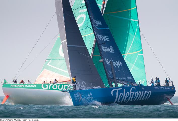 Amb el “Groupama” francès ja a terra –el vaixell liderat per Franck Cammas arribava a les 11:33 hora espanyola- la segona posició de l’etapa encara està en joc i tres vaixells són seriosos candidats a aconseguir l’anhelada posició: el “Telefónica” espanyol, el “Puma” nord-americà i el “Camper” neozelandès que, finalment virava ahir a última hora de la vesprada. De moment i segons l’informe de les 11.00 hora espanyola el vaixell d’Iker Martínez es col·loca 5,3 milles per darrere dels nord-americans després d’arrapar 3,7 milles en les últimes tres hores i es posiciona 1,7 milles per davant de l’equip kiwi i és que, tal com comentava Diego Fructuoso: “La lluita està sent molt dura pel segon lloc: ‘Puma’, ‘Camper’ i nosaltres estem molt a prop. Ens veiem, la qual cosa és increïble després de tant de temps. Portem al voltant de 10 viradas en sis hores, així que us podeu fer la idea de com estem. No són males condicions per al nostre vaixell, però qualsevol cosa pot passar i la veritat és que després de tant de temps i tanta lluita espere que siga positiu”.