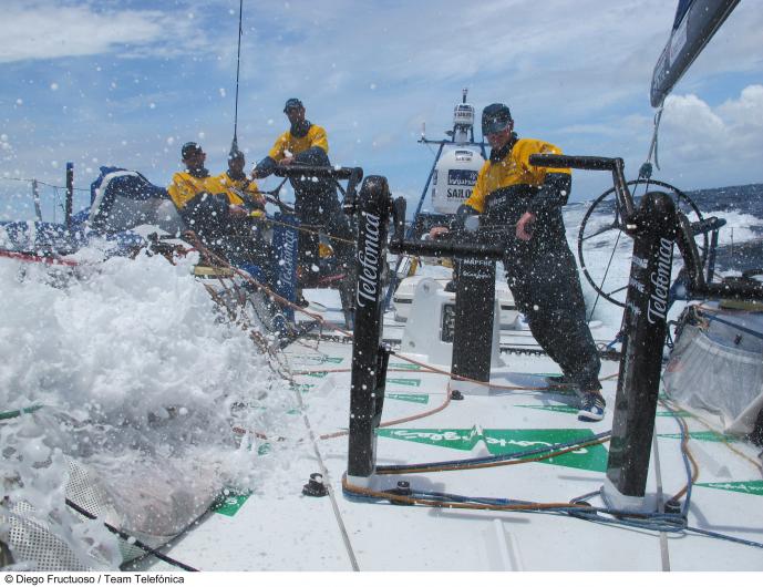 Aproximadament una hora després, el “Telefónica” era el primer vaixell en trabujar seguit de “Groupama”. Al capdavant de la flota i a menys de 300 milles de Lorient, l’embarcació espanyola patia un dany al timó de babord i un trencament en el timó de respecte, a estribord, per la qual cosa s’ha vist obligat a dirigir-se a la ciutat francesa a velocitat reduïda.