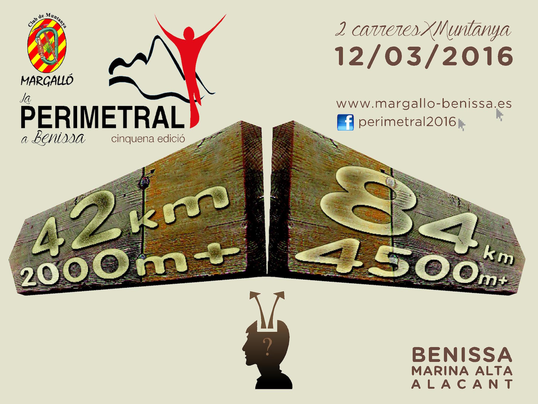 El Club de Muntanya Margalló ha anunciat que la cinquena edició de la cursa Perimetral de Benissa tindrà dos recorreguts nous que els participants podran triar: una marató de 48 km o una ultra trail de 84 km. La prova està prevista per al 12 de març de 2016.