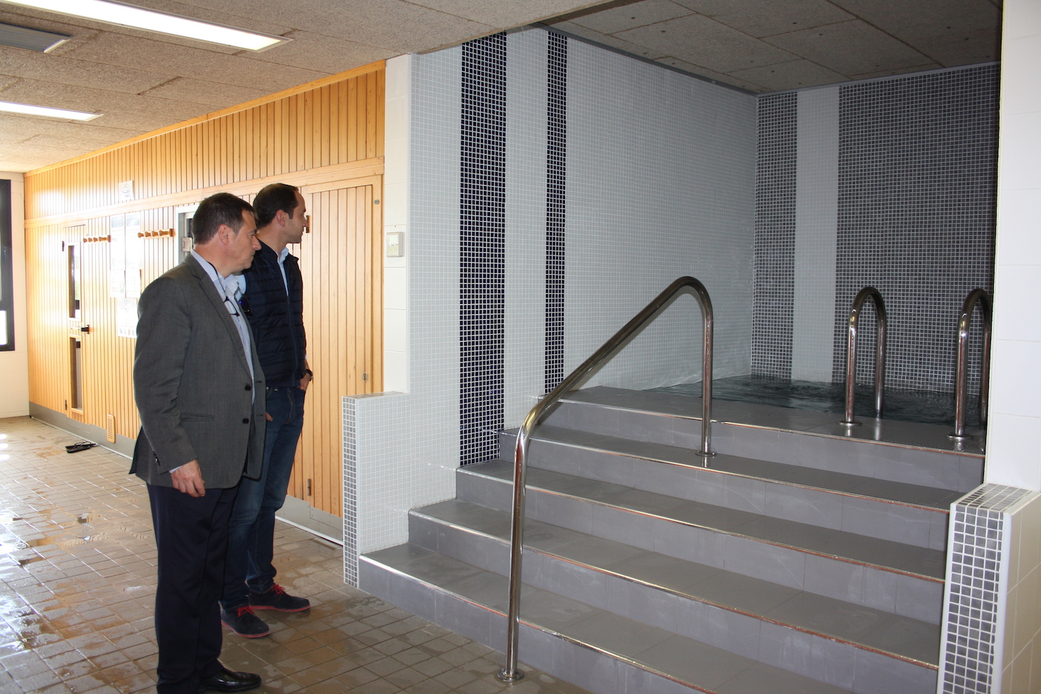 El batle, Juan Bautista Roselló i el regidor d’Esports, han visitat aquest matí les instal·lacions de la piscina municipal coberta per a conèixer de primera mà aquestes millores.