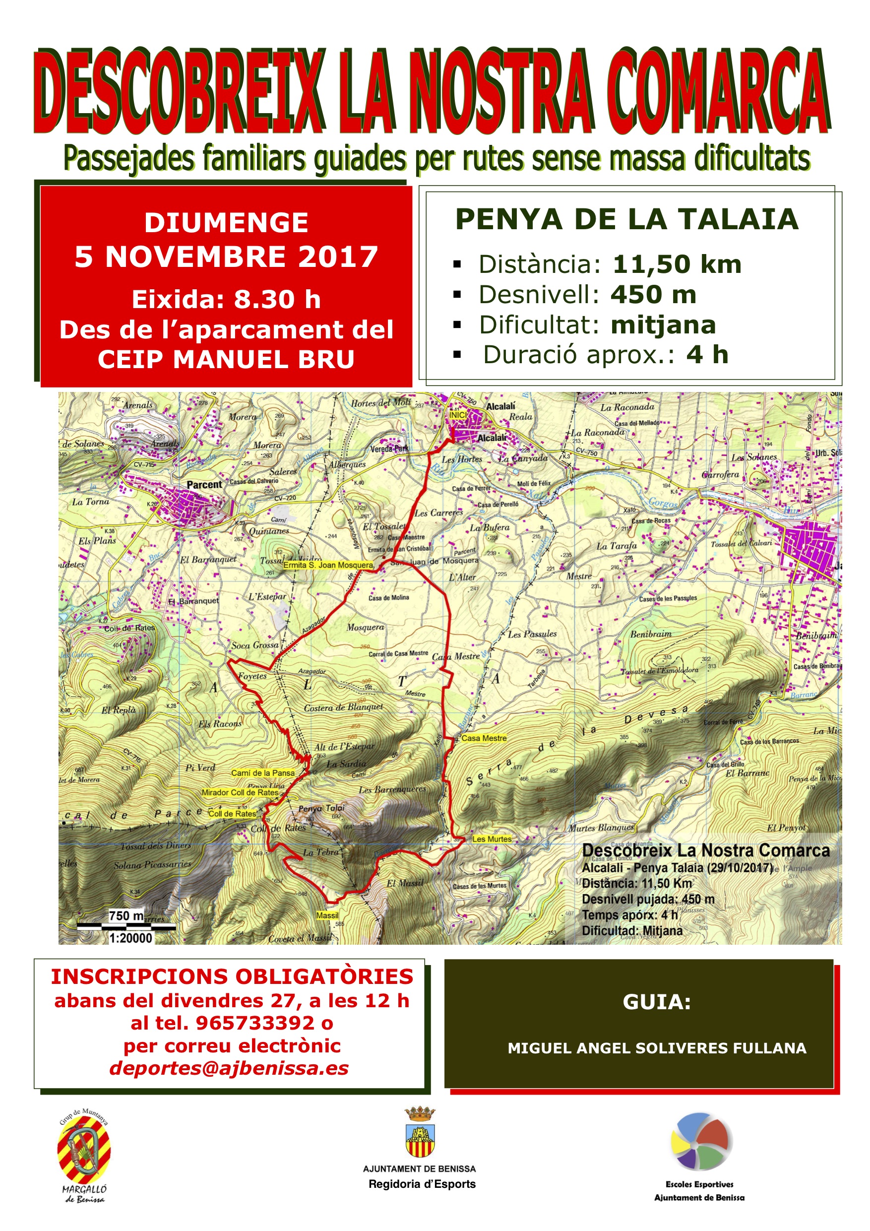 Si les condicions meteorològiques impediren fer la passejada en condicions, s’anul·laria el mateix dia. Aquest cicle d’excursions està organitzat pel Grup de Muntanya Margalló i la Regidoria d’Esports de l’Ajuntament de Benissa. La pròxima passejada es realitzarà el diumenge 26 de novembre de 2017.