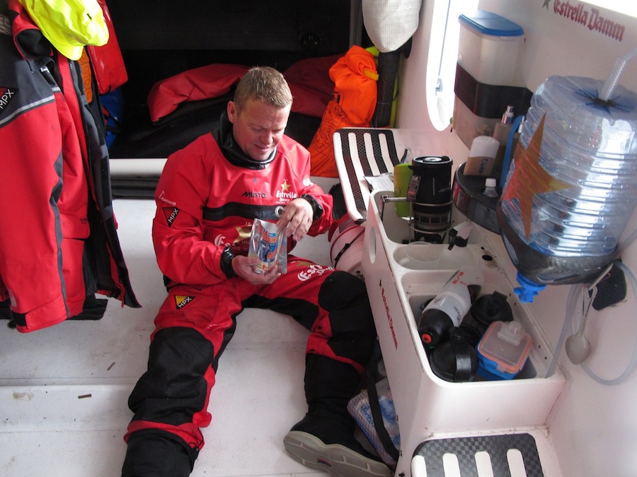 En la mateixa línia anava el correu electrònic d’a bord aquesta matinada, amb la moral alta malgrat navegar en cenyida (contra el vent) més del compte: “Avui (per ahir) vam passar el front que veníem buscant, no gaire fort, d’entre 20 i 25 nusos. Virada i cap al Sud! Pensàvem que havíem acabat de cenyir, doncs no, sorpresa! A través de Madeira una altra vegada tornem a cenyir, aquest cop sense onada i amb menys vent, però cenyida! Per demà esperem l’entrada en l’anticicló, i amb ell també començar a traure les bermudes, la gorra i la crema de sol. Pel que fa a la resta, venim sense problemes, dormim i mengem al ritme de les guàrdies “, conclou la bitàcola.