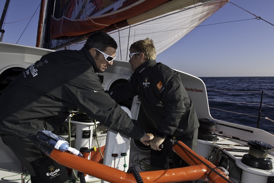 El barco d’Alex Pella i Pepe Ribes torna a tindre la millor mitjana de velocitat de les últimes 24 hores (entre les deu del matí d’ahir i de hui), quasi 18 nusos, recorrent 428 milles. Això ha sigut possible gràcies a un bon rumb directe a l’est i unes condicions quasi perfectes per a la velocitat de l’Estrella Damm. Però la navegació no ha sigut fàcil, ja que no tot és córrer en aquesta volta al món en condicions extremes: “Ja s’ha normalitzat una mica la situació. Tenim 25 nusos del sud-oest i ja no donem tants bots “, va explicar Pepe Ribes en videoconferència. “En els últims dies hem hagut de frenar dues vegades perquè pensàvem que si no trencaríem el barco. Han sigut dues situacions de mar confusa, amb el barco saltant al buit com un cavall desbocat. Vam posar la trinqueta i tres rissos i vam baixar a 14 nusos durant tres hores ahir per la vesprada i cinc hores fa un parell de dies “, va comentar.