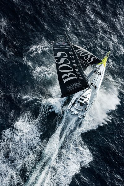 L’Hugo Boss segueix rumb sud i està a unes 270 milles (500 Km) al nord-est i navega amurat a babord (rep el vent per l’esquerra) a 11 nusos (20 km/h) amb vents del sud-est de 10-12 nusos (18 a 22 km/h)