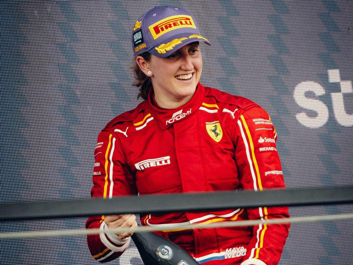 El traçat del circuit urbà de Jeddah (Aràbia Saudí) ha quedat gravat per sempre en la memòria de Maya Weug, pilot benissera de 19 anys que aquest dissabte no només debutava a la F1 Academy corrent als comandaments d’un Ferrari. A més, és que ho feia pujant al podi com a tercera, encara que una posterior sanció a la guanyadora en forma de penalització de 20 segons la duia a avançar un lloc i acabar formalment com a segona.