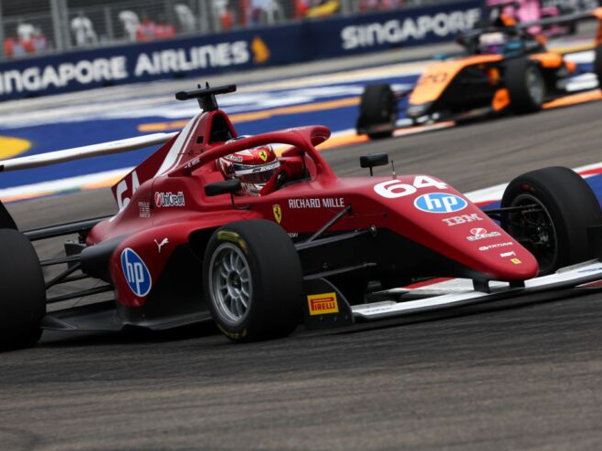 Quan la pluja va arribar a Marina Bay al final de la cursa, afectant la visibilitat i l’agarre dels cotxes, Nicole Havrda va perdre el control i es va veure obligada a retirar-se per segona vegada aquest cap de setmana i cinquena aquesta temporada. Mentre diversos equips van cridar a les seues pilots a boxs per a canviar de pneumàtics llisos a pneumàtics de pluja, el trio capdavanter va optar per mantindre’s a pista després de l’eixida del cotxe de seguretat.