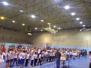 Distribuïts per la pista central del Palau Sant Pere, i acompanyats pel regidor d’Esports, Arturo Poquet Ribes, i pel batle de Benissa, Juan Bautista Roselló, es va nomenar a tots els xiquets i xiquetes que s’han inscrit, en les seues diverses modalitats a les escoles esportives municipals.