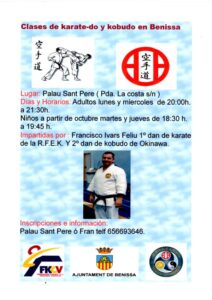 Les classes s’impartiran al Palau Sant Pere i estaran a càrrec de Francisco Ivars Feliu, 1r Dan de Karate de la RFEK i 2n Dan de kobudo d’Okinawa.