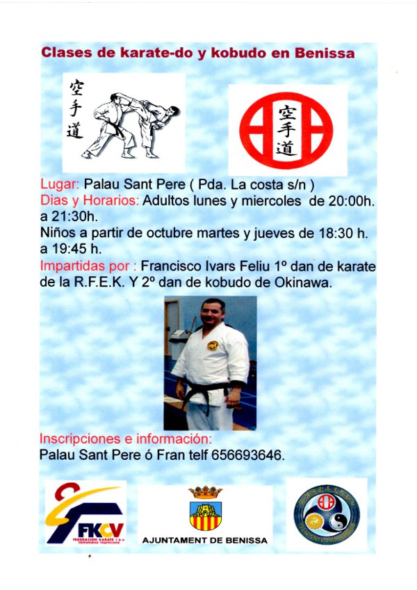 Les inscripcions per al curs de karate i kobudo de la temporada 2012-2013 a Benissa ja estan obertes. L’organització ha establert dos grups: Adults (des de 14 anys cap endavant) i Xiquets (des de 6 anys fins als 14).