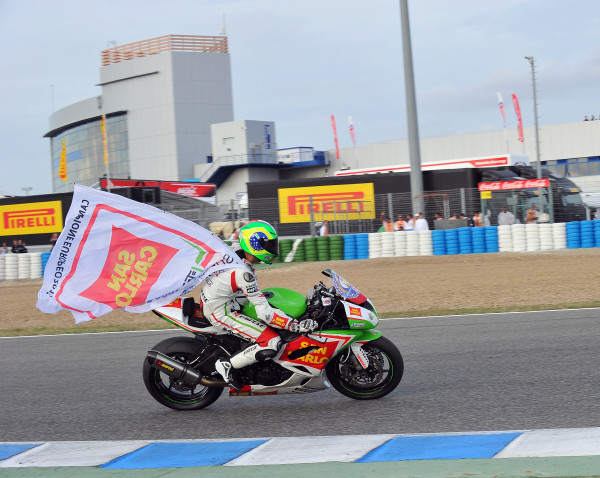 Franco Morbidelli (San Carlo Team Italia Kawasaki) s’ha proclamat Campió d’Europa de Superstock 600 gràcies al segon lloc aconseguit en l’última cursa de la temporada, disputada aquesta vesprada a Jerez. El jove nascut a Roma podria haver-se conformat amb la tercera posició després del problema mecànic que patia en la segona volta el seu rival Christian Gamarino (Team Go Eleven Kawasaki) però, no obstant això, escurçava l’avantatge del seu company d’equip Alessandro Nocco, aconseguia avançar-lo i fins i tot intentava fer-se amb el cap de cursa en els últims moments d’aquesta.