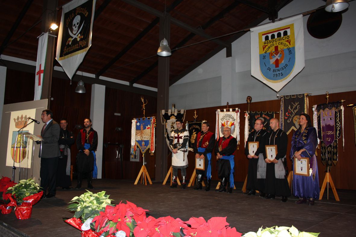 A l’acte van acudir el batle de Benissa, Juan Bautista Roselló i alguns regidors de la corporació. Roselló va felicitar els festers i el recentment estrenat president de l’Associació de Moros i Cristians, Kiko Martínez. Al llarg de la nit es van lliurar els premis als guanyadors del concurs de dibuixos infantils de les Festes de Moros i Cristians 2013, del Concurs Fotogràfic de les Festes de Moros i Cristians 2012 i del concurs de cartell anunciador. Totes aquestes obres van poder ser admirades per tots els assistents en estar exposades a l’entrada del Taller d’Ivars. També van pujar a l’escenari els guanyadors del concurs de disfresses de les Festes de Moros i Cristians 2012.