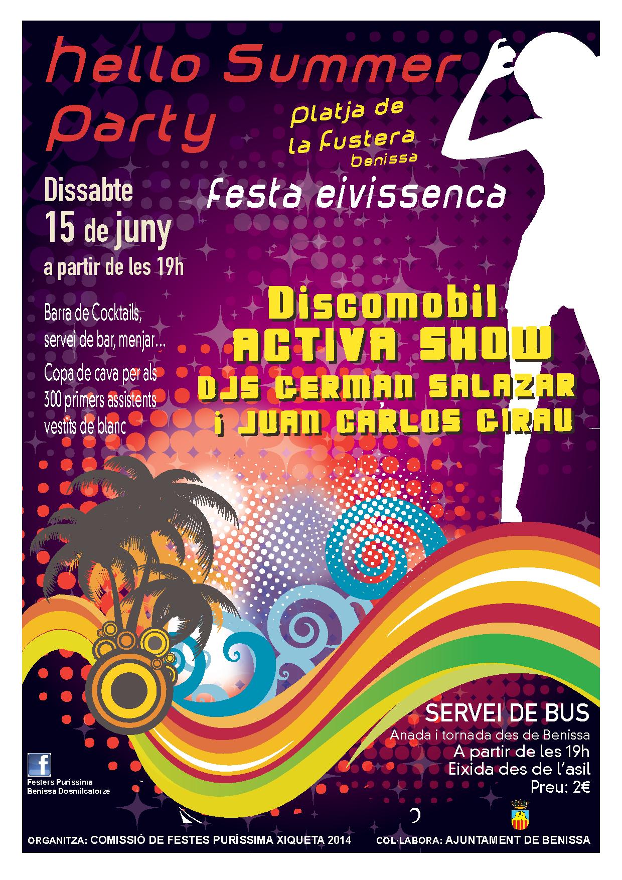 La Comissió de festes de la Purissima Xiqueta 2014, arranca amb un dels seus primers esdeveniments el pròxim dissabte 15 de juny, amb una festa de temàtica eivissenca, a partir de les 19.00h, a la platja de La Fustera de Benissa.