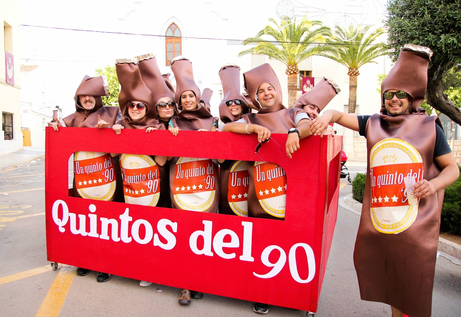 L’anyà del 90 ha guanyat enguany el premi a la millor disfressa de la tradicional cercavila de disfresses que es fa el Dia dels Fadrins en les Festes de la Puríssima Xiqueta. Els quintos, disfressats de quintos de cervesa, han guanyat així el premi de 300 euros.