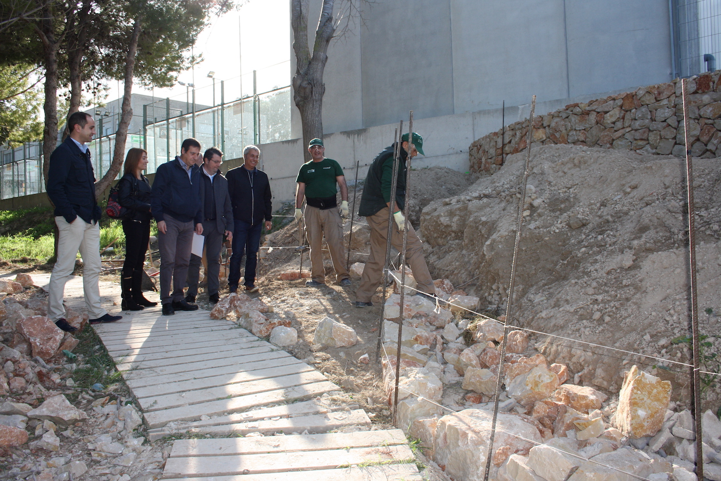 El batle, Juan Bta. Roselló, i el regidor d’urbanisme, Arturo Poquet han visitat els alumnes per a veure els treballs realitzats fins ara: la neteja de la parcel·la de males herbes i plantes al·lòctones invasores, el disseny i construcció d’una sèrie de marges de pedra seca a l’entrada del parc, que continuaran cap endins al llarg de la duració del temps de pràctiques.