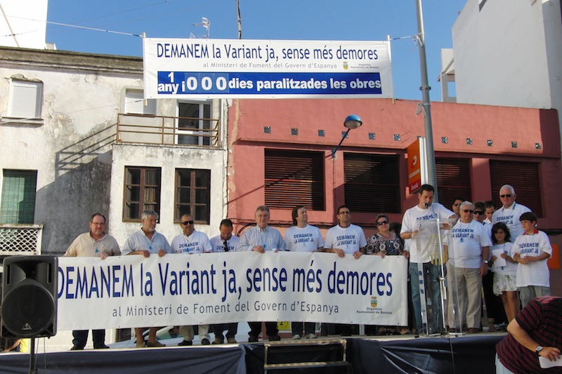 Prop de 500 persones es van manifestar dissabte passat a Benissa, per reivindicar la represa de les obres de la variant a la N-332, que porten paralitzades més d’un any. Van acudir els membres de la corporació municipal, amb els batles encapçalant la manifestació, el de Benissa, Juan Bautista Roselló, el de Calp, Dénia, Teulada-Moraira, Senija, Poble Nou i Alcanalí. També van acudir alguns diputats autonòmics com el benisser David Serra.