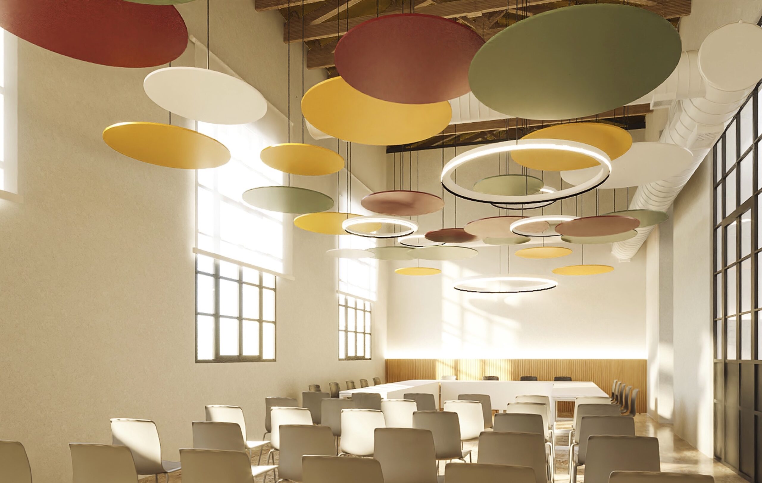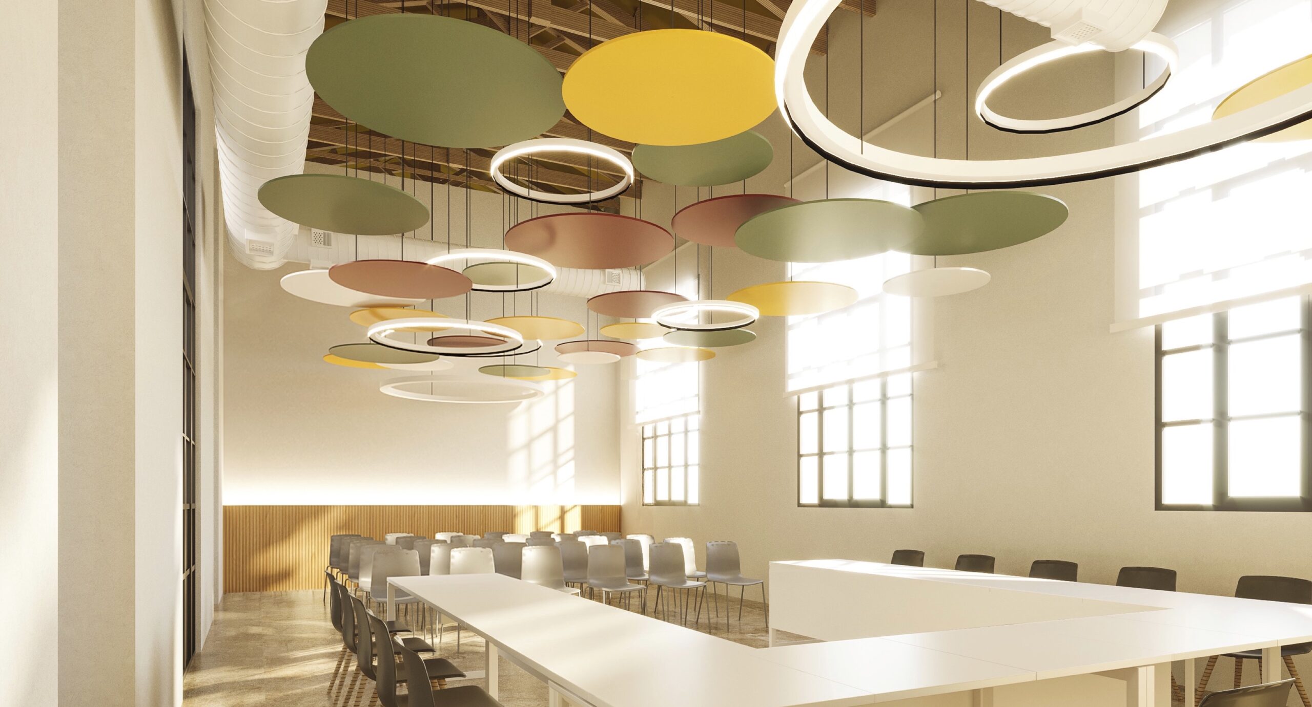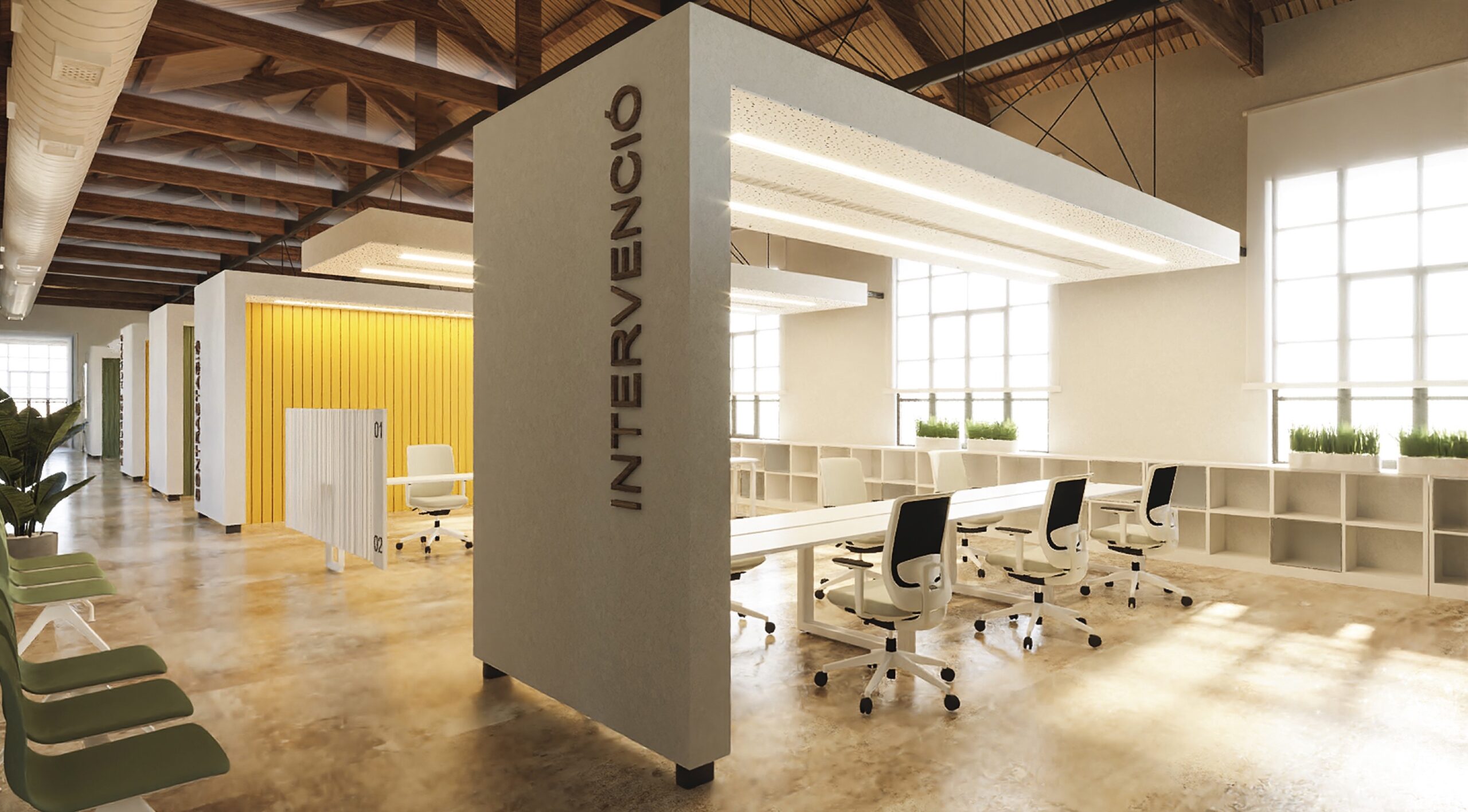 Així les coses es preveuen espais de treball diàfans, separats per envans de separació entre els diferents departaments, amb una estètica moderna i respectant les característiques de l’edifici, com els sostres de fusta. En la planta baixa hi haurà diferents zones de treball, despatxos i la sala de plens, amb una capacitat entre 30 i 40 persones.